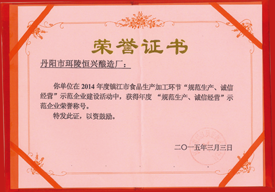年度“規(guī)范生產(chǎn)、誠信經(jīng)營”示范企業(yè)